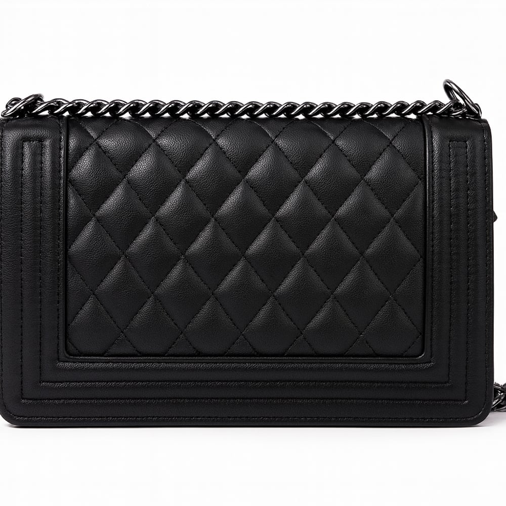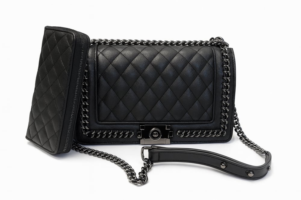 Quilted Shoulder Bag with Metal Chain Trim and Wallet