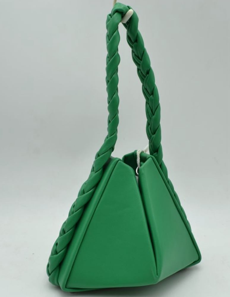 perfect statement piece for any outfit. Designed with a modern triangular silhouette and beautifully braided detailing, this handheld bag adds texture and style in all the right ways.